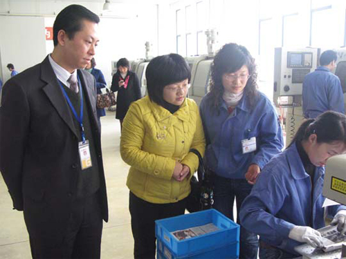 2009年2月11日,宜兴市妇联副主席杜颖等一行在环科园党群工作部王延莉副部长、环科园妇联林敏主任的陪同下来我公司视察指导女职工工作。公司党支部副书记、工会主席夏杰、女职工委员会主任朱宝玲、生产部器件车间主任尹俊伟热情接待了她们,并陪同她们参观了厂区和生产车间。