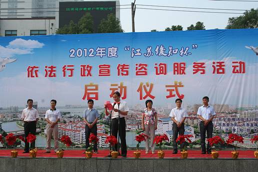 近日,宜兴市全面推进依法行政工作领导小组组织全市38个行政执法部门和宜城街道在市文化广场举行了2012年度“俊知杯”依法行政宣传咨询服务活动。各参与部门的领导,以及宜兴市法制办法制科、行政许可科、主要业务科室的负责同志和工作人员现场发放宣传资料,面对面为市民朋友们提供咨询服务和技术指导,并接受行政执法投诉。当日,共发放法律法规等宣传资料3万多份,接受投诉20余件。已成功举办四届的全市依法行政宣传咨询服务活动,在今年又增添了新的内容。结合我市今年在全省率先基本实现法治政府建设阶段性目标任务的要求,市各部门在继续狠抓工作落实的同时,及时回顾总结近年来推进依法行政工作的情况,并以展板的形式,向全市人民集中展示了我市法治政府建设所取得的成果,进一步营造率先建设法治政府的浓厚氛围。市政府何晓进副市长、市人大裴全华副主任、市政协芮俊燕副主席、市委政法委许小平副书记、市委宣传部蒋定芳副部长、市司法局史耀清副局长参加了活动启动仪式。何市长作了重要讲话。