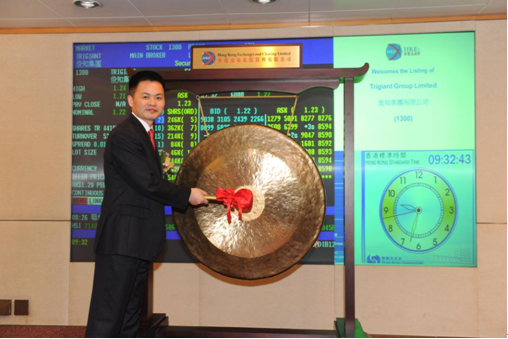 俊知集团有限公司董事会主席兼执行董事钱利荣先生,敲打铜锣以示开市