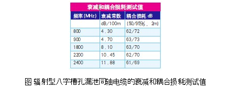 耦合损耗是表征辐射型漏泄同轴电缆与外界环境之间电磁波能量相互耦合强度的特性参数,是区别辐射型漏泄同轴电缆与其它射频同轴电缆的唯一指标。辐射型漏泄同轴电缆的耦合损耗越低,表明它所辐射的信号越强,但相应地该电缆的衰减也相应增大。由于当耦合损耗值小于50dB时,漏泄电缆的衰减是很高的。因此在使用频段为800-2400MHz时,局部耦合损耗值Lc50设计在60-70dB/2m之间,局部耦合损耗值Lc95设计在70-80dB/2m之间,射频信号得到了比较充分的利用,既保证了射频信号覆盖距离,同时也不会增大衰减,保证了射频信号的传输效果。