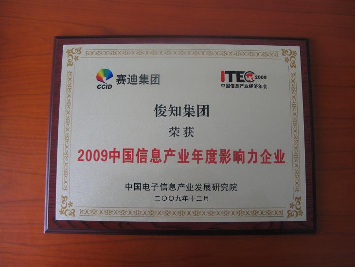 俊知集团荣获“2009中国信息产业年度影响力企业”